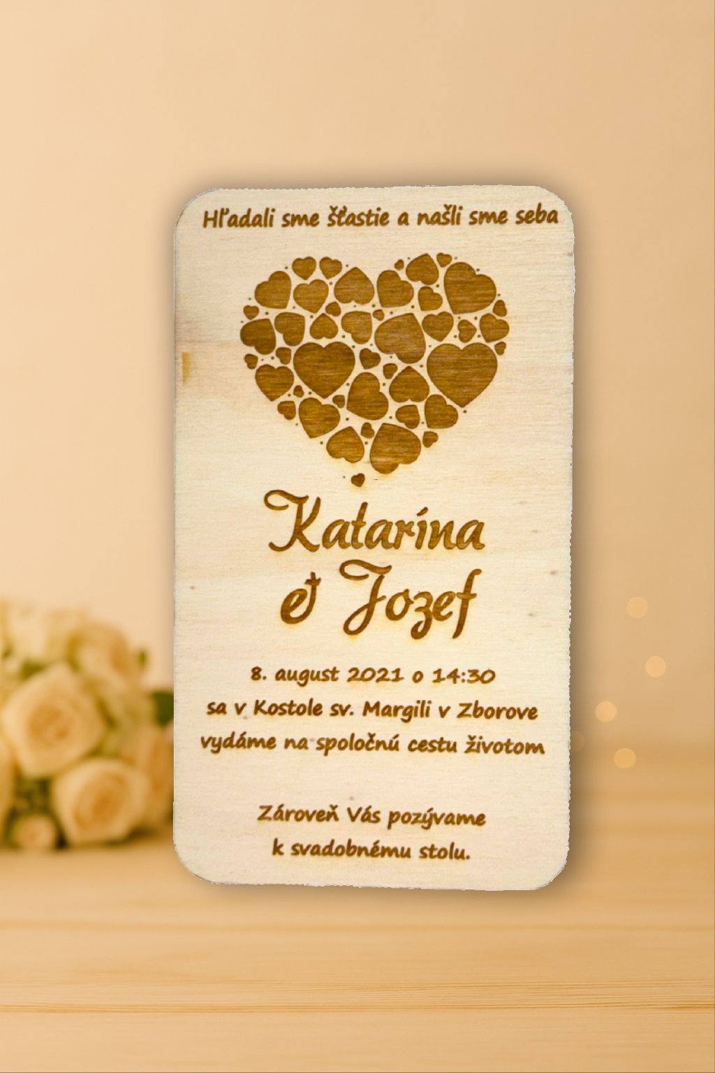 Toto svadobné oznámenie vyrábame z 3 mm hrubej topoľovej preglejky.