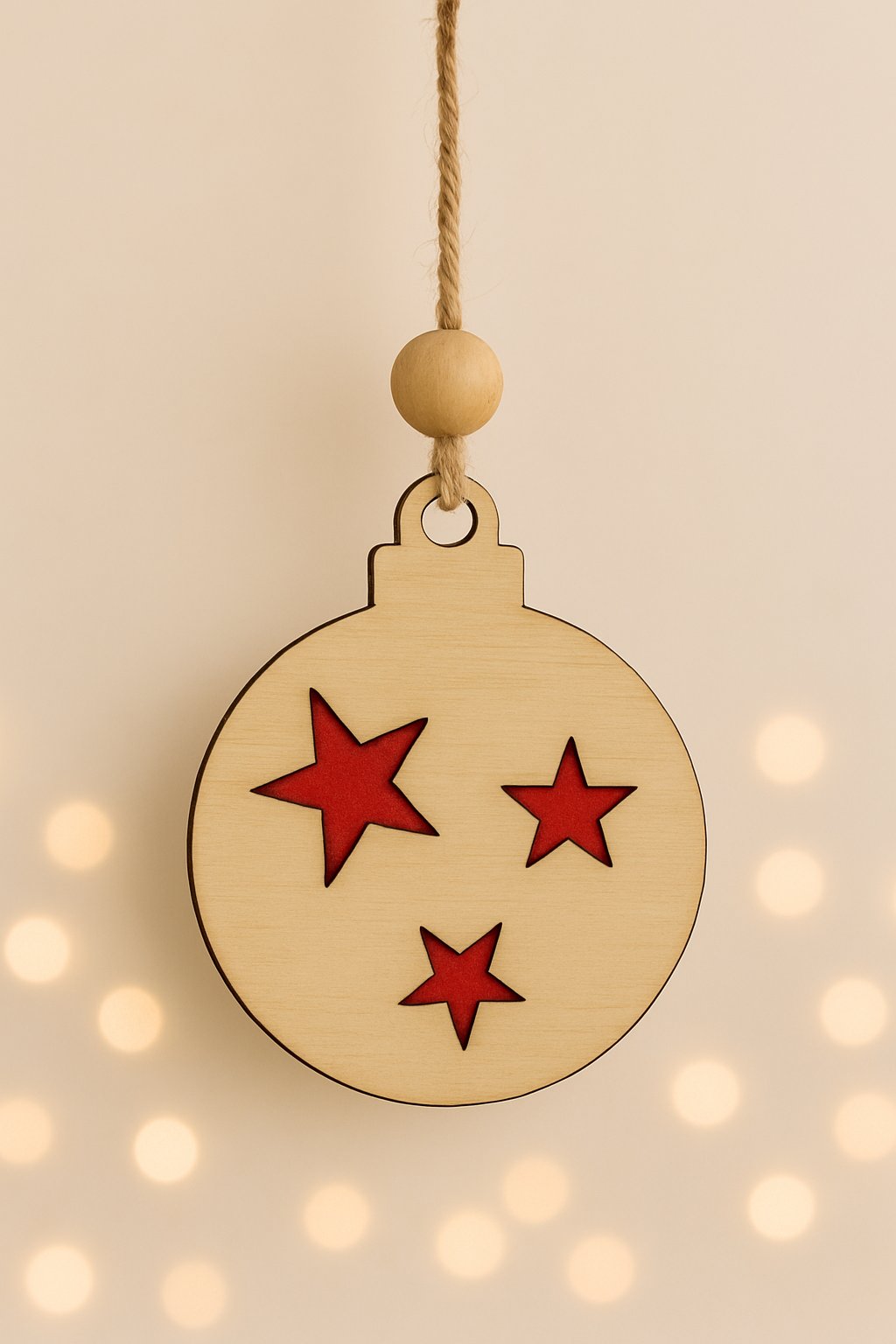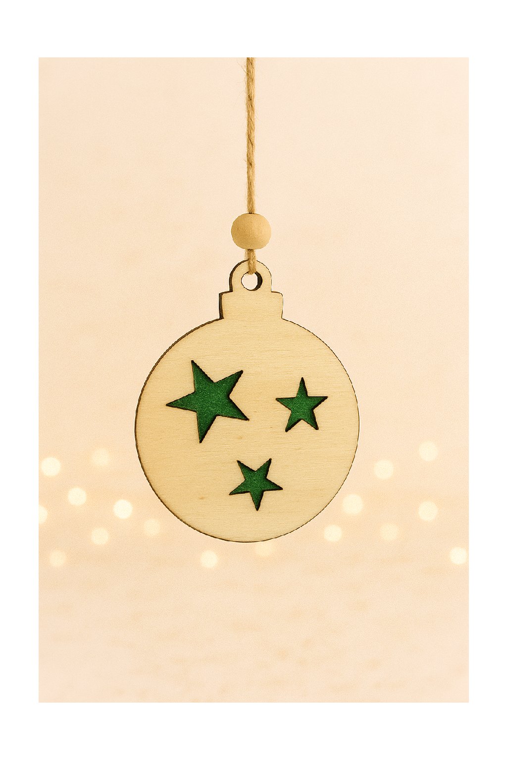 Každá ozdoba je starostlivo gravírovaná do dreva a dostupná v troch vianočných farbách – červenej, zelenej a bielej. Dokonalý doplnok na stromček alebo milý darček.