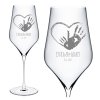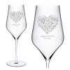 Elegantné poháre na biele víno s vysokou nožičkou a originálnym tvarom kalicha sú ideálne na svadbu alebo ako dar pre novomanželov. Objem: 520 ml.
