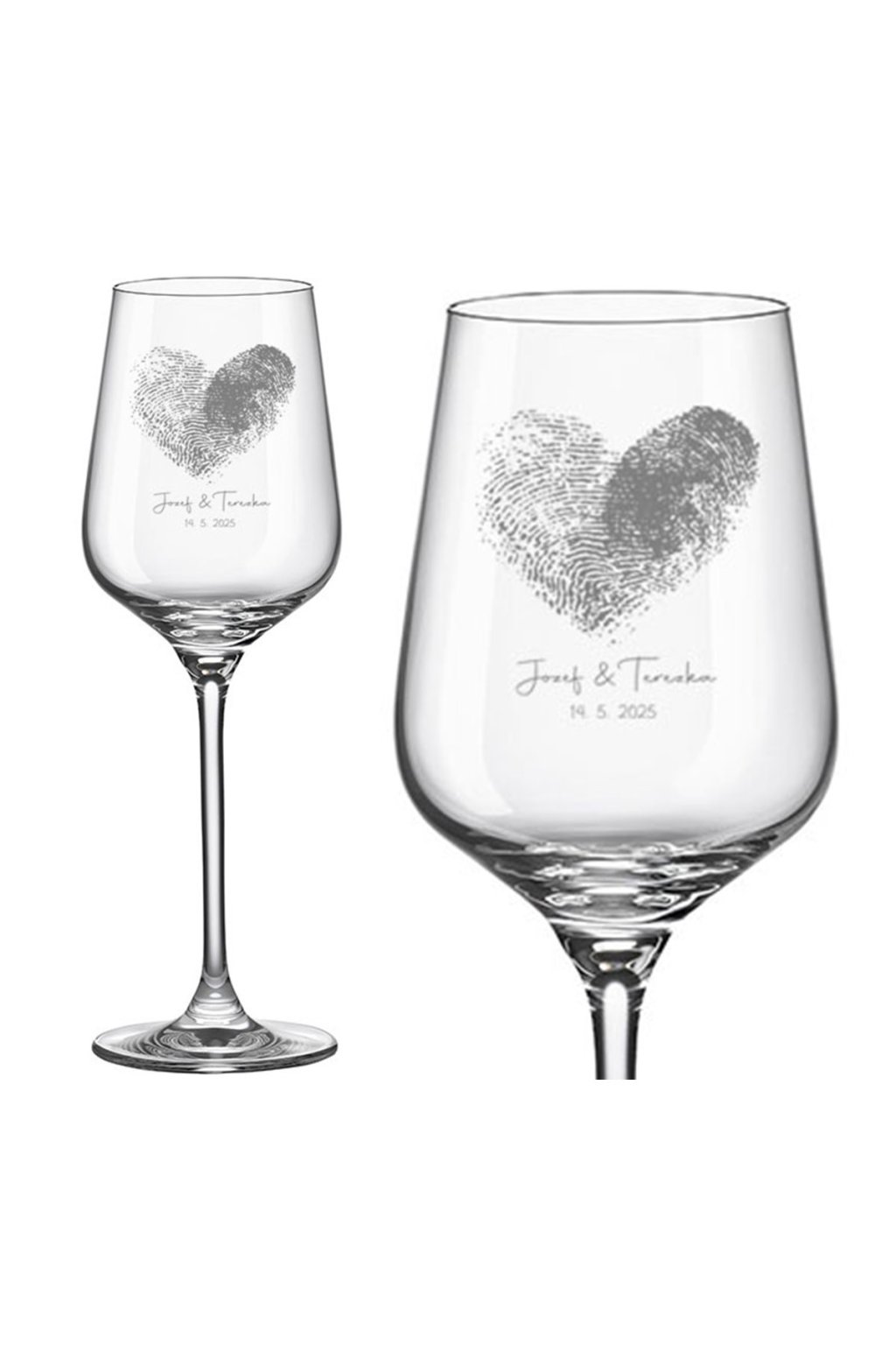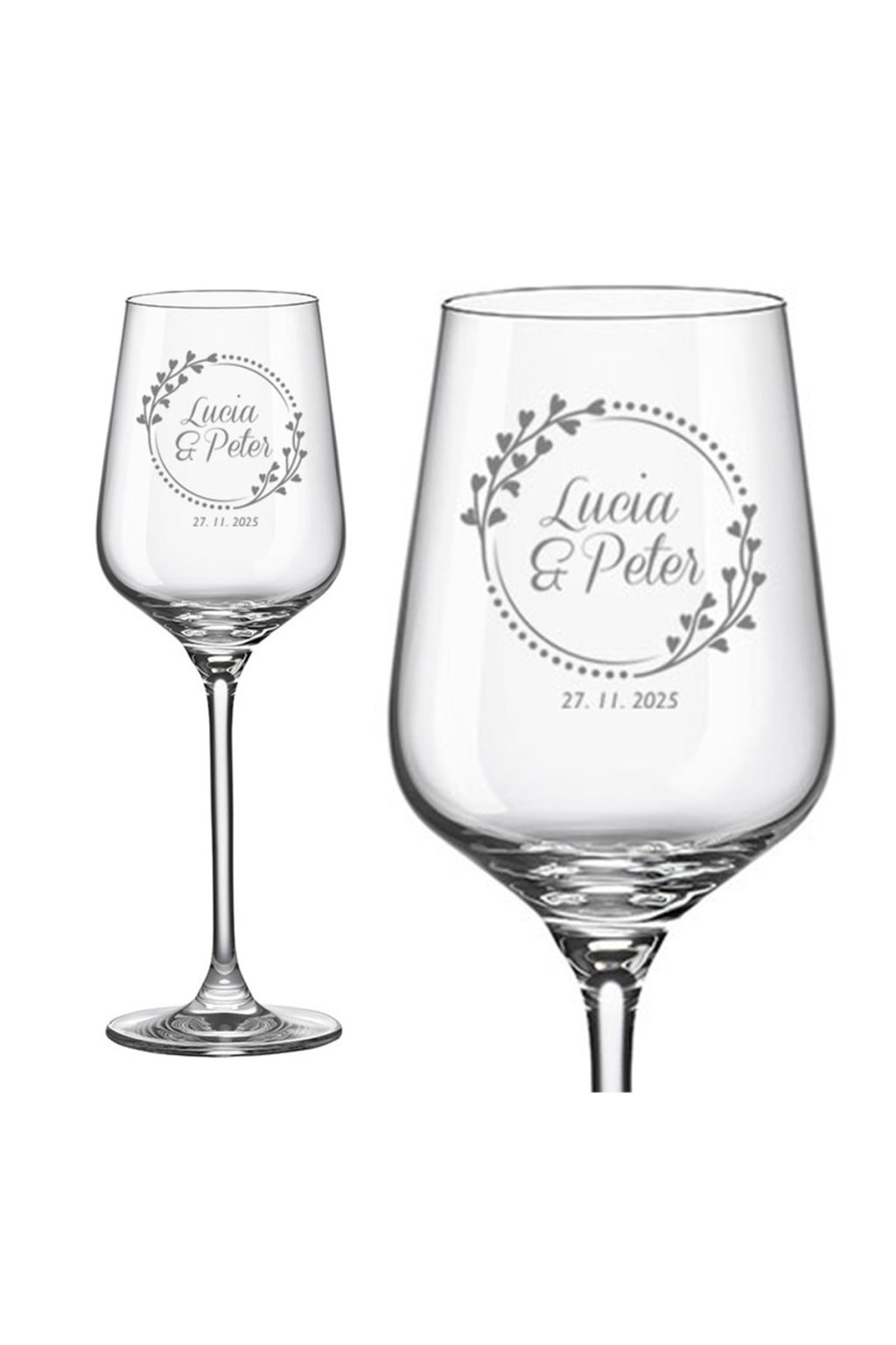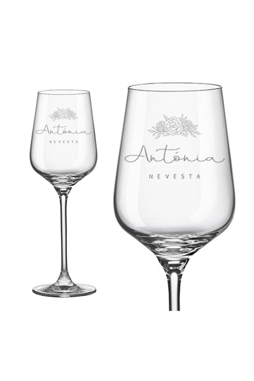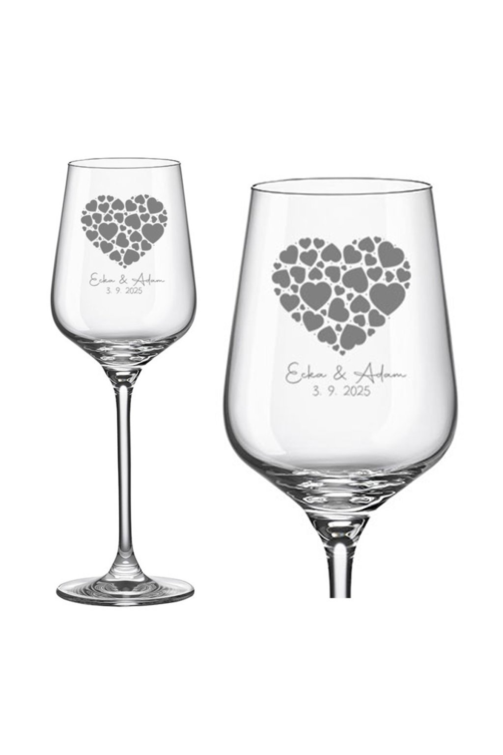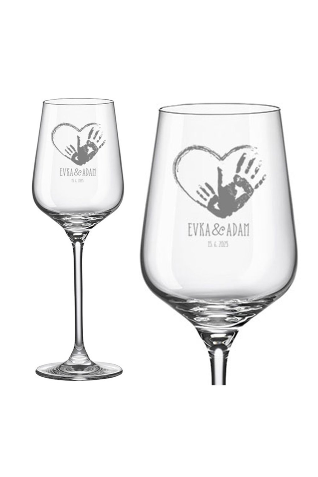 Elegantné poháre na biele víno s vysokou nožičkou a originálnym tvarom kalicha sú ideálne na svadbu alebo ako dar pre novomanželov. Objem: 350 ml.