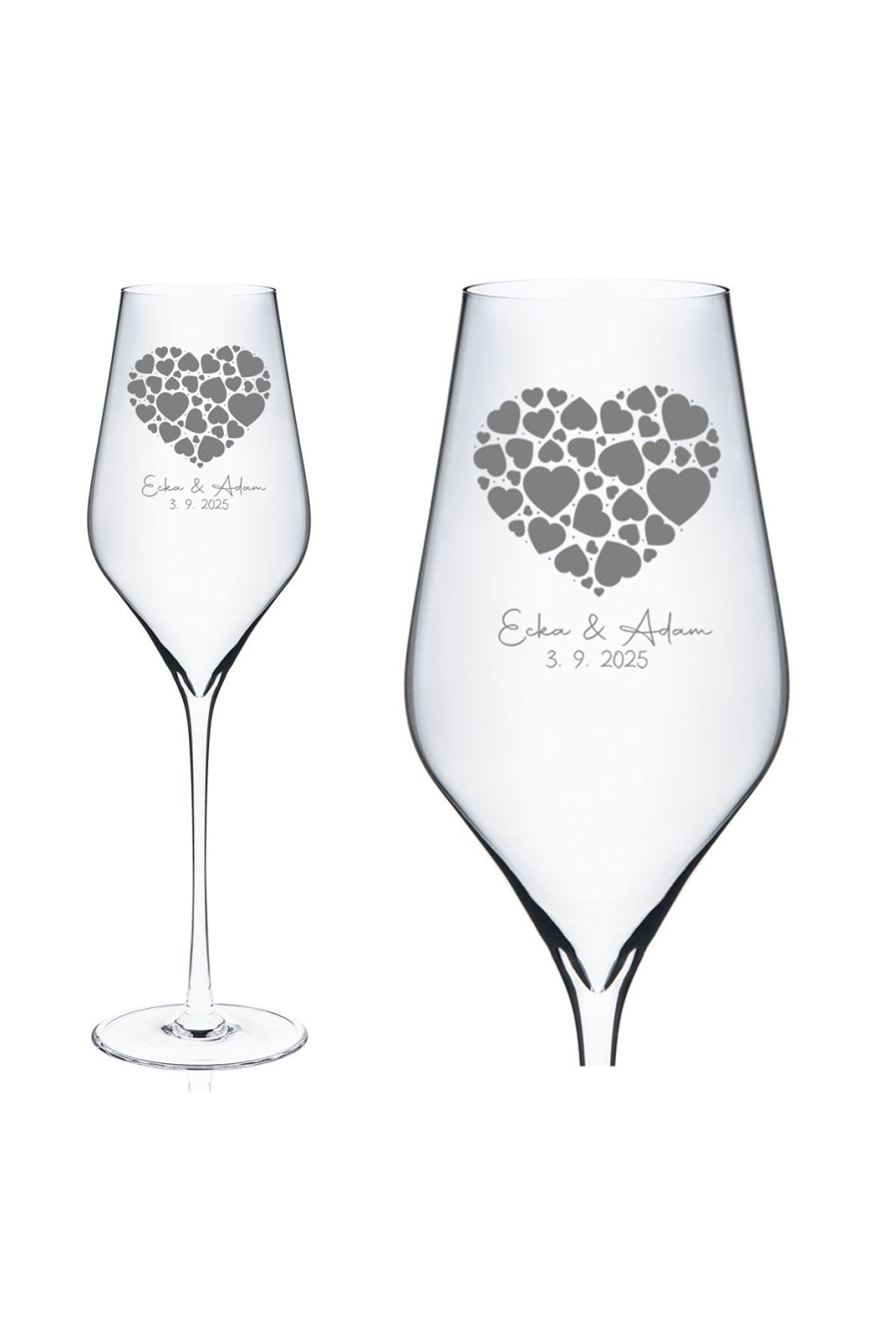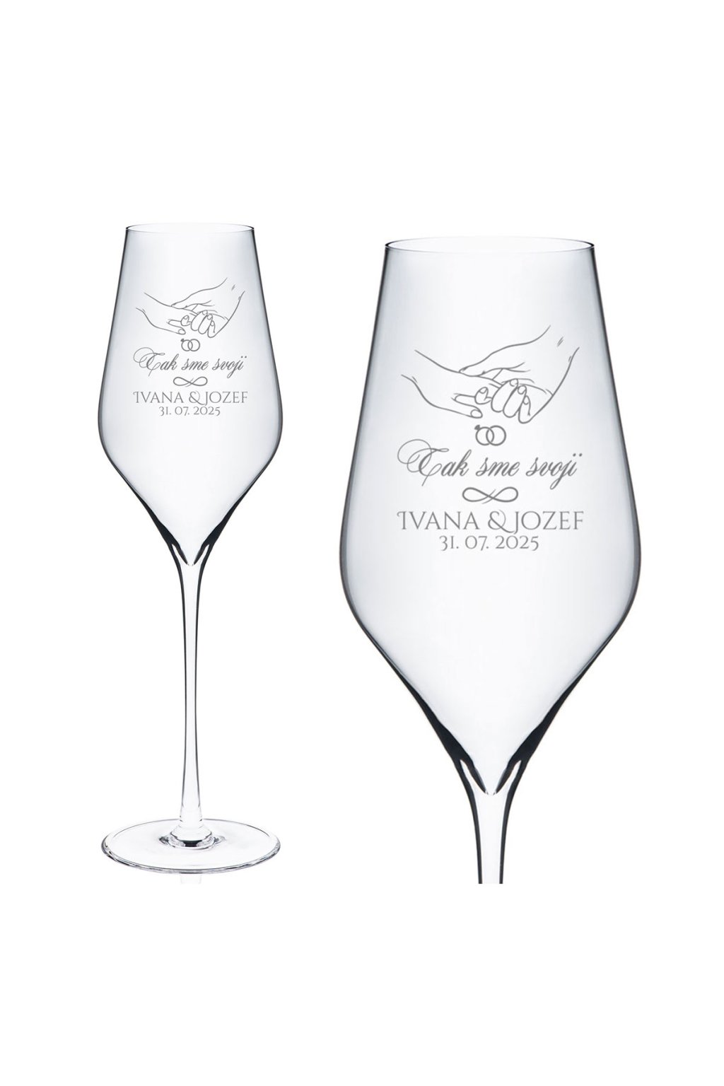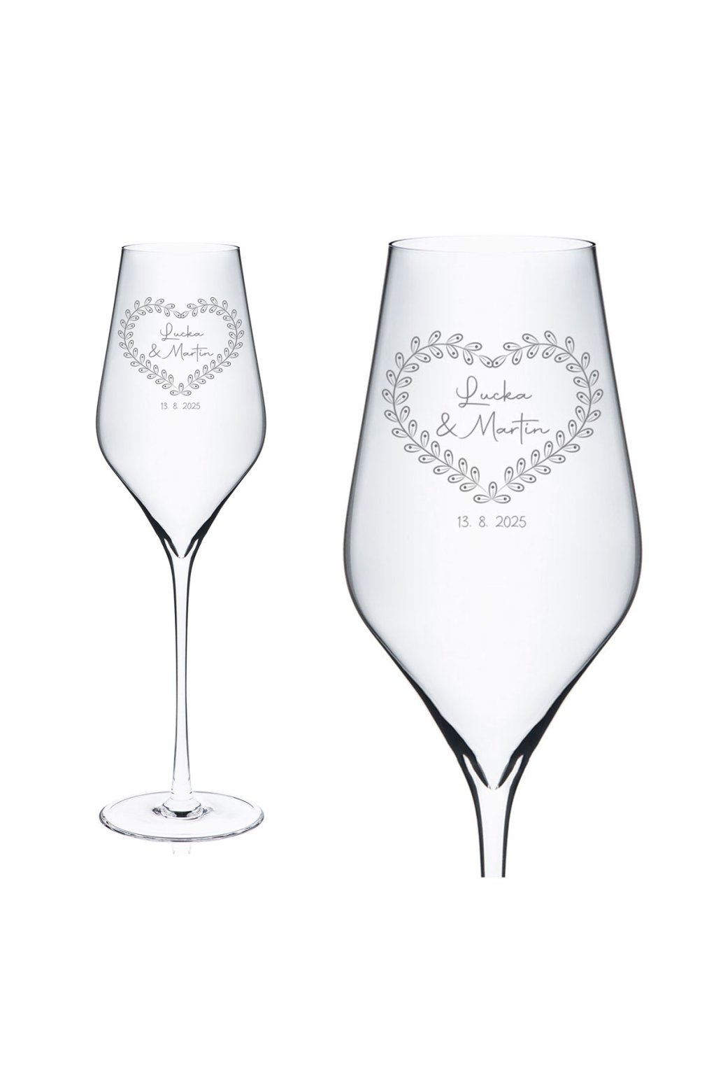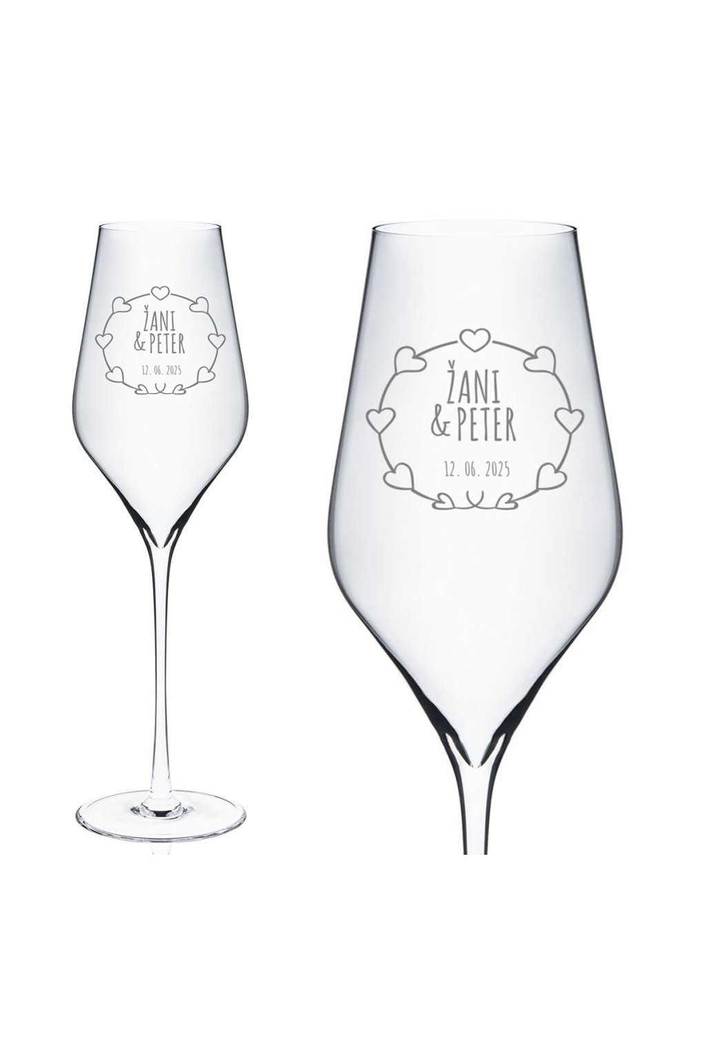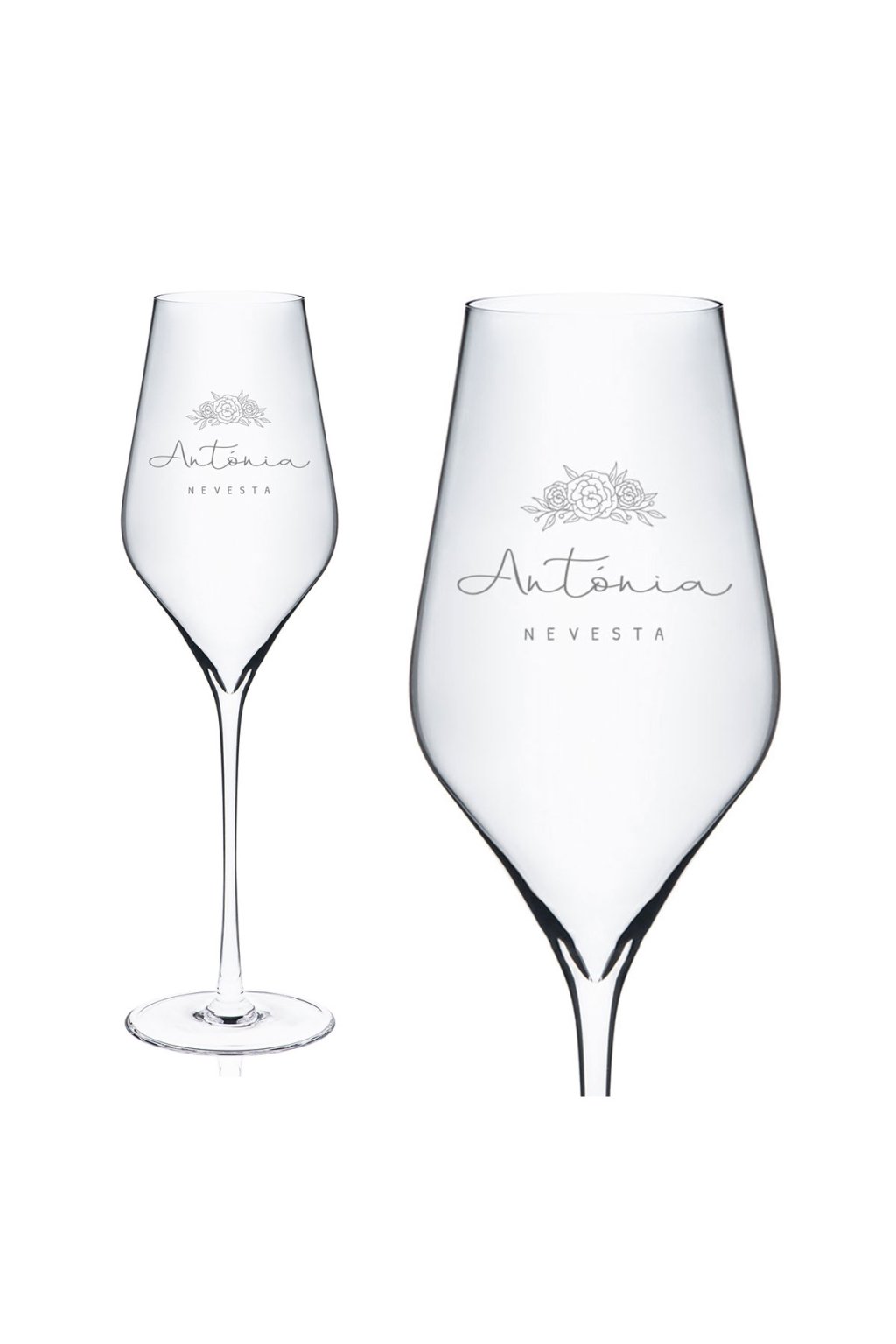 Elegantné poháre na šampanské s vysokou nožičkou a originálnym tvarom kalicha sú ideálne na svadbu alebo ako dar pre novomanželov. Objem: 310 ml.