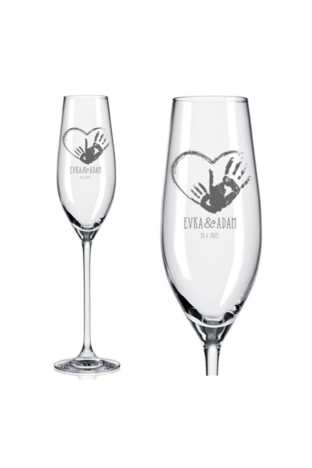 Elegantné poháre na šampanské s vysokou nožičkou a originálnym tvarom kalicha sú ideálne na svadbu alebo ako dar pre novomanželov. Objem: 210 ml.