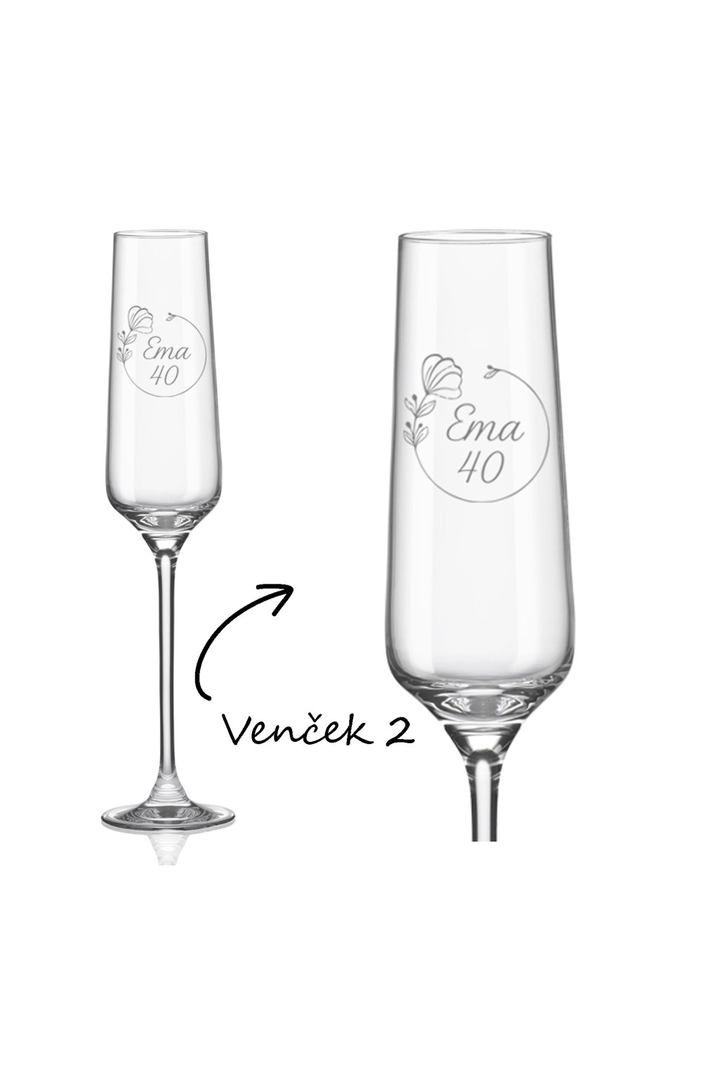 Elegantný pohár na šampanské s vysokou nožičkou a originálnym tvarom kalicha, ktorý je ideálny ako narodeninový darček. Objem: 190 ml.