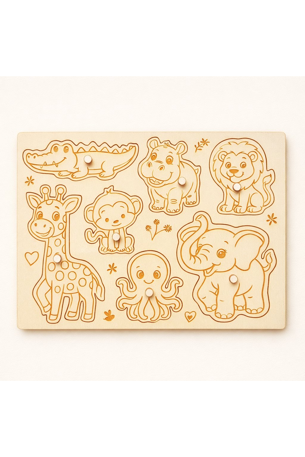 Drevené vkladacie puzzle so zvieratkami je krásna a zmysluplná hračka vyrobená z kvalitnej 3 mm topoľovej preglejky. Puzzle je navrhnuté tak, aby bolo bezpečné, ľahké a príjemné na dotyk, vhodné pre malé detské ruky. Každé zvieratko je precízne vyrezané a doplnené o drevený úchyt v rovnakej farbe dreva, ktorý uľahčuje manipuláciu.